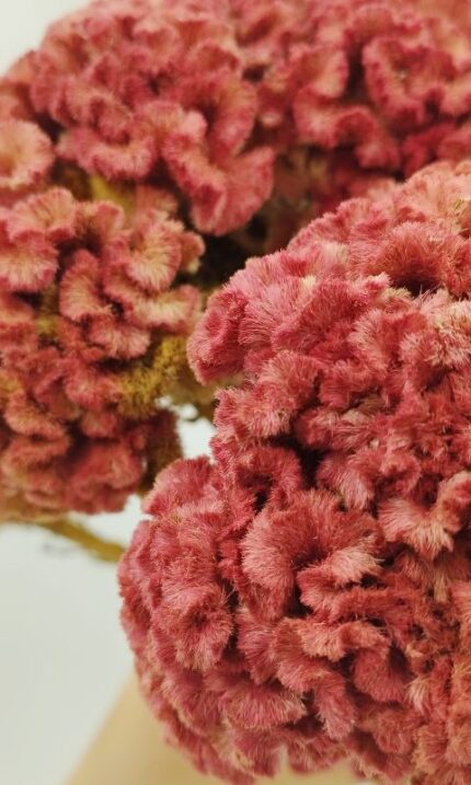 Celosia, floarea uscată cu texturi spectaculoase și culori bogate, oferă un farmec aparte oricărui proiect floral handmade.