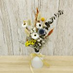 Aranjament floral vibrant și elegant ce combină o selecție rafinată de flori uscate. Înălțime aproximativă 25 cm, diametru 14 cm, vas 10 cm. Ideal pentru decor de birou, casă sau un cadou deosebit.