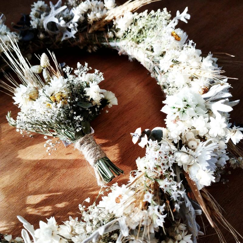 Coroană florală din flori uscate
