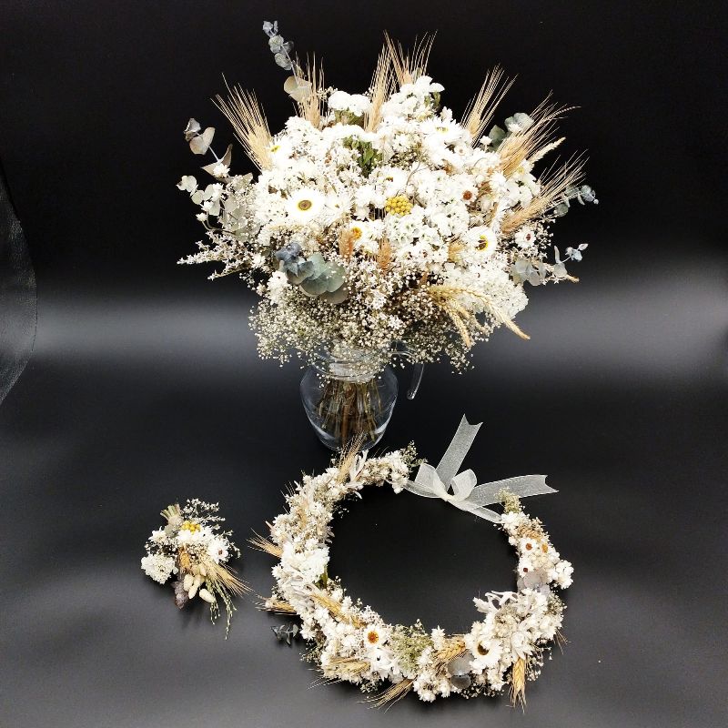 Set mireasă din flori uscate – „Ivory Harvest”
